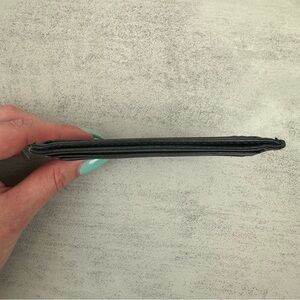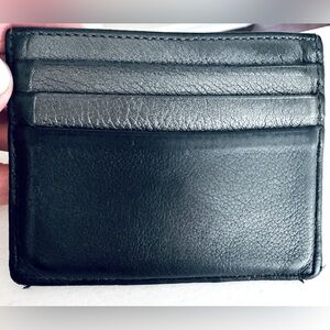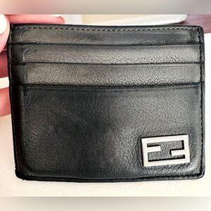 Fendi Black Leather Card Holder featuring 6 exterior card slots and one center pocket.