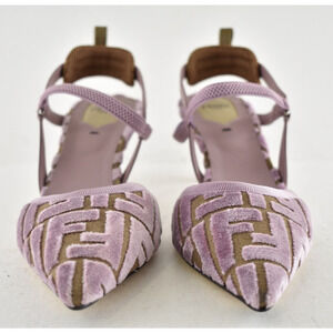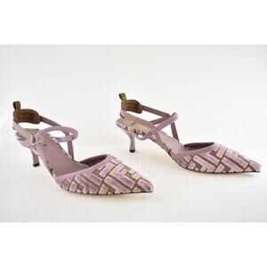 Fendi Colibri Lite Mauve Pink FF Logo Pointed Slingback 55mm Kitten Heel Pump 37.5
