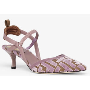 Fendi Colibri Lite Mauve Pink FF Logo Pointed Slingback 55mm Kitten Heel Pump 39