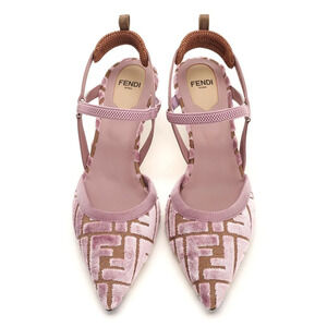 Fendi Colibri Lite Mauve Pink FF Logo Pointed Slingback 55mm Kitten Heel Pump 40