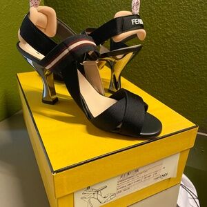 Fendi Tricolor Canvas and Fabric Colibri Slingback Sandals