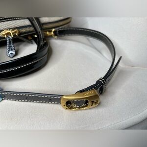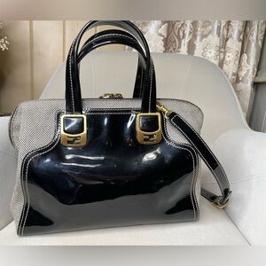 Fendi Convertible Satchel Chameleon Black Patent Leather & Canvas Handbag.