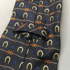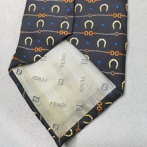 Fendi Cravatte Mens Necktie 100% Silk Mens Horseshoes Pointed Black Gold Brown