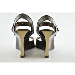 Fendi Dark Brown FF Motif Logo Ankle Strap Sandal Peep Toe Heel Pump Wedge 36.5