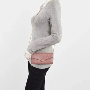 This must-have Fendi wallet-on-chain is a fun little accessory to brighten up your everyday! Crafted out of luxurious studded calfskin leather, this wallet features an eye catching FF logo clasp. The interior boast enough card slots and room for your cash and coins! The detachable cross body strap makes going hands free a breeze, or take the strap off for a chic clutch or wallet!
