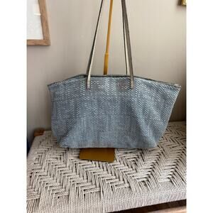 Good used condition. Handles show some wear, minors wear to corners and one snagged area on back side of tote.