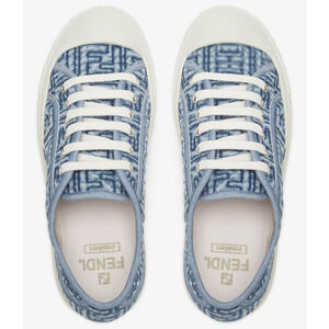 Fendi Domino Blue Denim FF Logo White Platform Logo Low Top Trainer Sneaker 40
