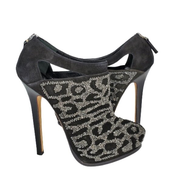 Fendi Embellished Suede Platform Ankle Booties. EU 38.5 (US 8.5). Pre-owned condition.