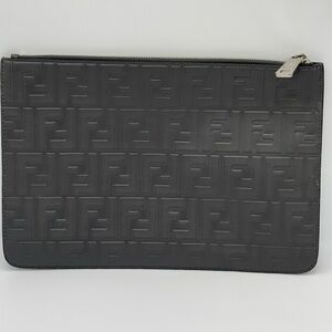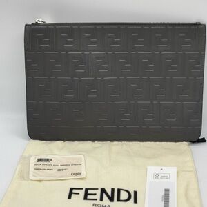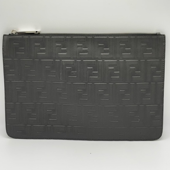 Fendi Embossed Zucca Pouch Grey