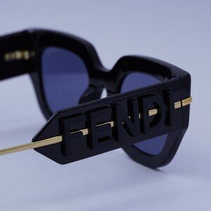 Authentic Fendi FE40097I 01V sunglasses in black frame, gold at the temples.
