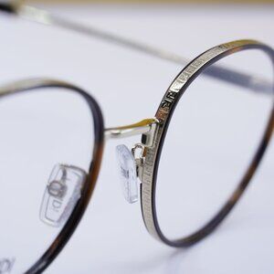 Round eyeglass frame in havana/gold.
