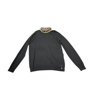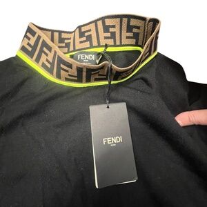 Fendi Turtleneck wool sweater Black wool with FF motif and border in green. Very classy and warm. Thin wool material. Size 54