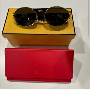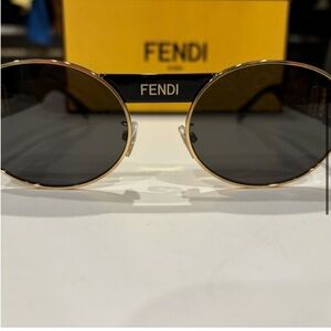 Fendi Fendace V3 mens black gold sunglasses eyeglass case cleaning cloth and box