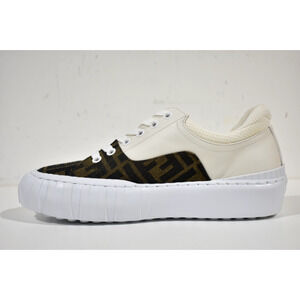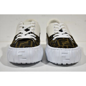 Fendi Force Brown FF Canvas White Platform FF Logo Low Top Trainer Sneaker 41