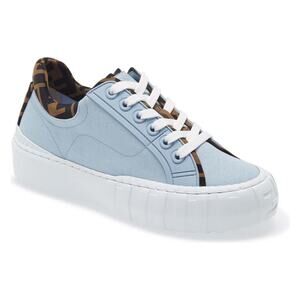 Fendi Force Sky Blue Canvas White Platform FF Logo Low Top Trainer Sneaker 35.5