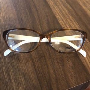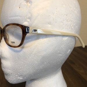 Fendi Frames. Tortoise shell acrylic frame with ivory arms. Gold hardware. Gold and brown logo on sides. Still has display lenses. Can be used as is or changed to rx lenses.