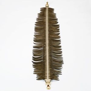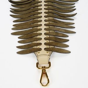 Fendi fringe strap you. Beige leather, green suede and gold-tone hardware. The Strap You features a leather body, leather fringe details, and lobster claw clasps. Pre-owned. Barely used - Excellent condition. Receipt and dustbag included.