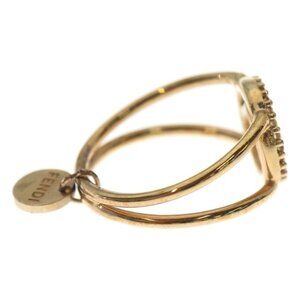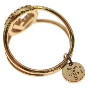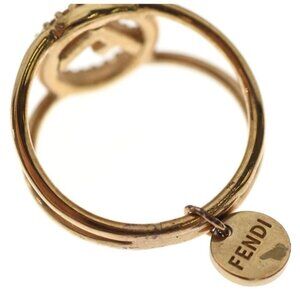 This is an authentic Fendi F's Rhinestone Ring. The 18K gold-plated band features a circular logo design embellished with sparkling rhinestones, creating a glamorous and eye-catching statement piece.