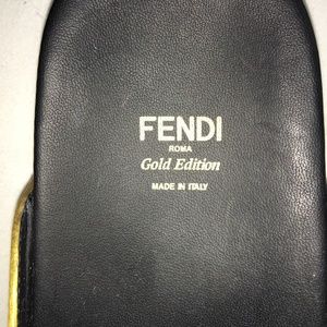 Fendi Gold Edition Black & Gold leather Galdiator style slides. Make your feet happy with the comfort of these slides. Shimmering in black and gold, the Italian slides are crafted from leather and feature a wave cross over pattern on the vamps. Leather lined insoles and rubber soles. New in box and 100% Authentic. Comes with dust bag and box.