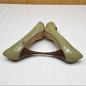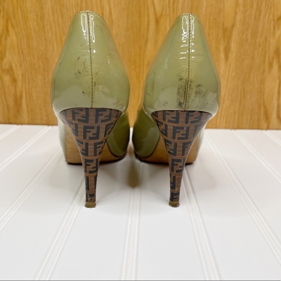 Fendi Green Patent Leather Zucca Print Heel Peep Toe Pumps