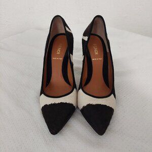 Fendi Italy Brown White Calf-hair Pointed Toe Diamond Cut Heeled Pump Size 36.5.