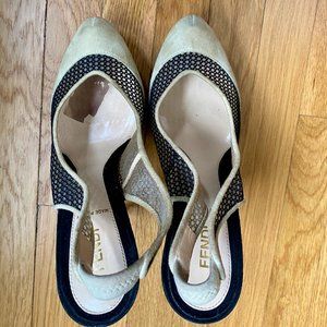 Fendi Ivory Suede Blk Mesh Slingback Pumps - size 39