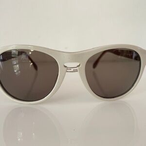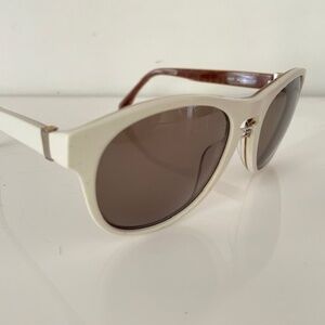 NWOT Ivory colored Fendi sunglasses, contrast brown color inside frames, silver accents . FS 5187 White New Authentic FS5187 54mm Brand: Fendi; Model: FS 5187 Color Code: 264 Frame Color: Ivory, Lens Color: Grey Size: 54mm - 20mm - 135mm; Country of Origin: Italy COMES WITH THE ORIGINAL DESIGNER CASE AND DUST CLOTH (never used).