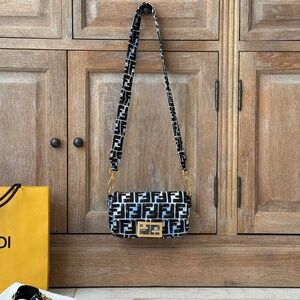 Fendi California Sky Collection Joshua Vides Convertible Baguette. Comes with shoulder strap and belt strap.