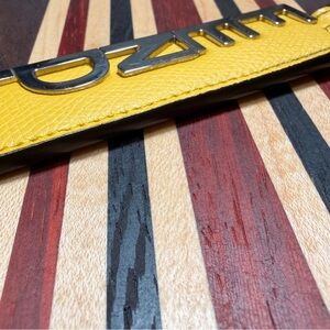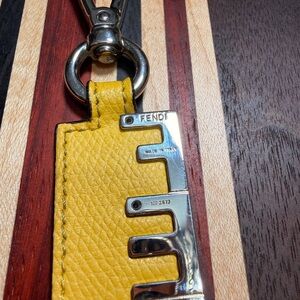 Gorgeous Fendi Keychain! It has yellow leather and silver tone hardware. There is some light scratches but overall still in great condition. This is truly a beautiful piece.