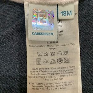 Beige chenille baby set. Tone on tone all-over FF logo, with striped edges at the collar and cuffs and teddy bear ears.
