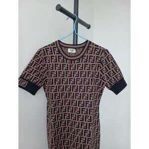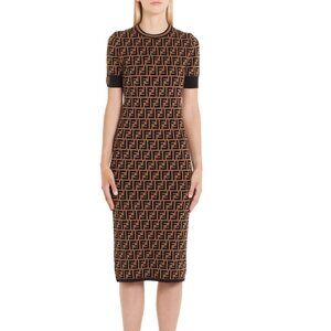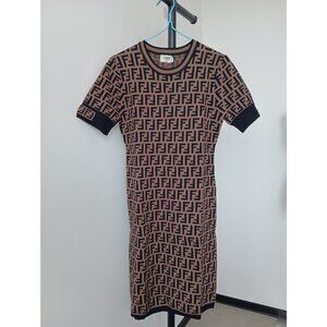 Fendi Knit Dress Short FF Zucca All-over Pattern Brown