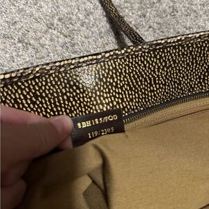 Brand new, never worn except for around the house. Metallic threading around the monogram makes it so unique. I love Borbonese and this bags handles remind me of it with the metallic dotted handles and leather. 100% authentic and come with authenticity card. Smoke free, pet free, scent free home so there is no smell to this bag. It’s been kept in a dust bag. However it’s a Tory burch dust bag.