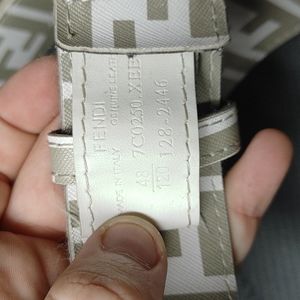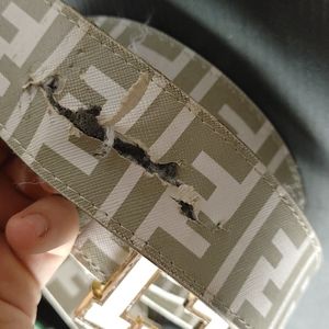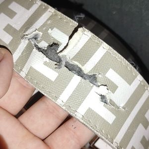 used Fendi belt, it does have a small rip. the user needed more of a direct size established. so he made one hole smaller.