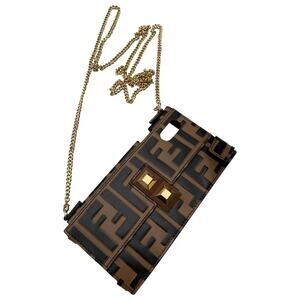 Fendi Leather iPhone X Case with Gold Chain – Brown – Brand New with Tags