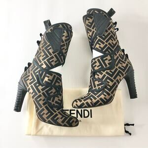 Fendi Lycra Vitello FF Logo Tape Promenade Heeled Boots 38