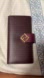 Elegant Fendi wallet in deep maroon. Features iconic gold logo clasp. Sleek and stylish design.