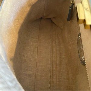 Flat leather top handle, gold tone and silver tone hardware, interior compartment to each side with turnlock closures, tan linen lining. In addition to Posh Authenticate, this bag comes with a certificate of authenticity from Entrupy, one of the world's lead luxury goods authentication services.