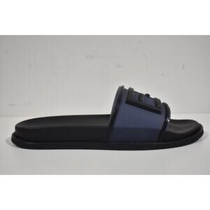 Fendi Mens Baguette Rubber Blue Black Logo Flat Slide Sandal Flip Flop UK 8 US 9