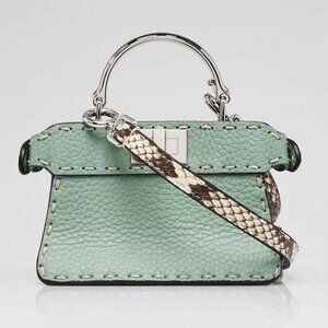 Fendi Menta Selleria Leather/Snakeskin Nano Peekaboo Maxi Handle Bag - 7AS106