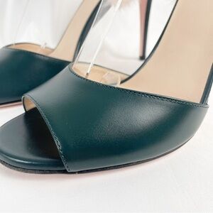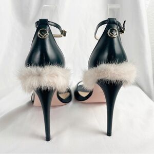Fendi Mink Fur Trimmed Open Toe Leather Heels Green EU 39