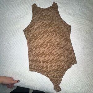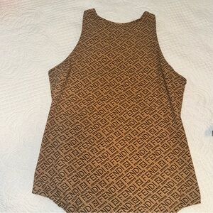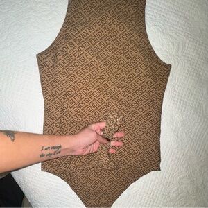 Chic Fendi tank bodysuit with iconic monogram. Luxurious and versatile design.