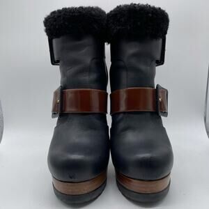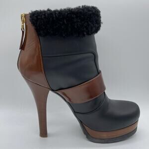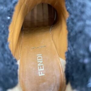 Fendi Moorland Two Tone Black Brown Leather Shearling Ankle Bootie Size 36.5 6.5