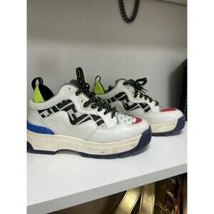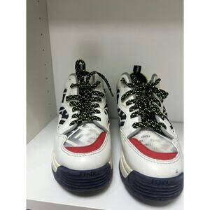 Step up your sneaker game with these stylish Fendi lace-up sneakers. Featuring a multicolor design with a white base and vibrant accents, these sneakers are perfect for casual wear or adding a bold statement to your outfit. Despite some scuffs and stains, these sneakers are in fair condition and ready to become a staple in your wardrobe. Made from a mix of leather and fabric, these sneakers offer both comfort and durability. Don't miss out on the opportunity to own a piece of Fendi luxury.