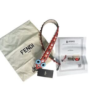 Fendi NWT Studded Flower Eyes Strap You Bag Strap in Red w/Dustbag and COA