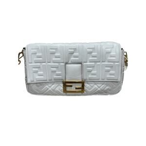 Fendi Nappa FF 1974 Embossed Large Baguette White NWT