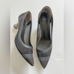 Fendi Navy Blue Black Mesh leather trim Colibri pumps EU 38