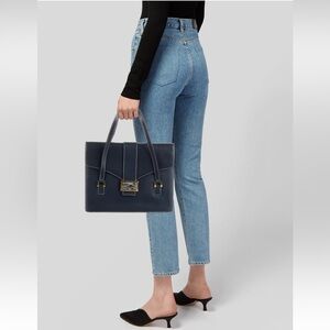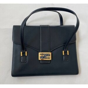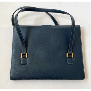 Fendi Navy Blue Leather top handle with marbel clasp Vintage