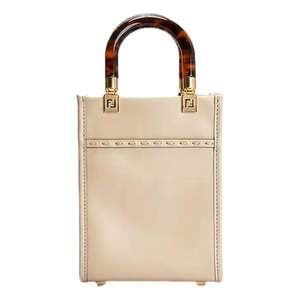 Elevate your everyday style with the Fendi Nude Calfskin Snake Print Mini Sunshine Shopper. Crafted in Italy from luxurious nude calfskin leather with an exotic snake print Fendi Roma logo, this compact yet statement-making tote exudes effortless elegance. Featuring signature tortoiseshell plexiglass top handles, gold-tone hardware, and an adjustable crossbody strap, it seamlessly blends sophistication with functionality. A true icon of modern luxury, perfect for day-to-night refinement