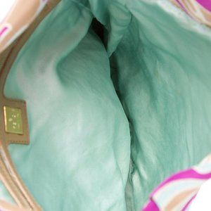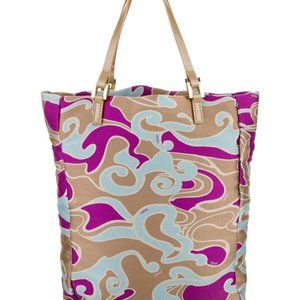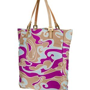 Fendi Nylon Small Purple Blue Swirl Tote Bag Beige Leather Straps Gold Hardware
