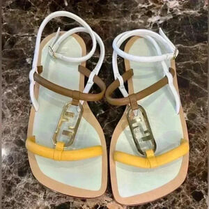 Fendi O'Lock Leather Colorblock Sandals Size 37.5